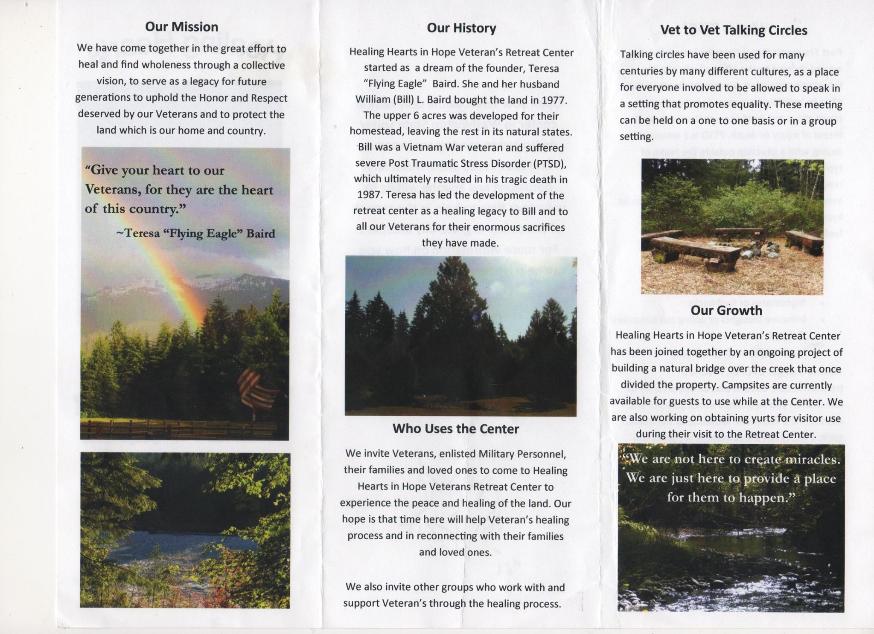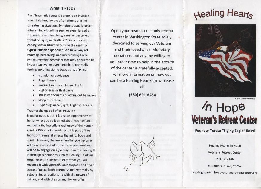 100% of all donations goes to Healing Hearts in Hope Veteran's Retreat Center To help our Veterans.